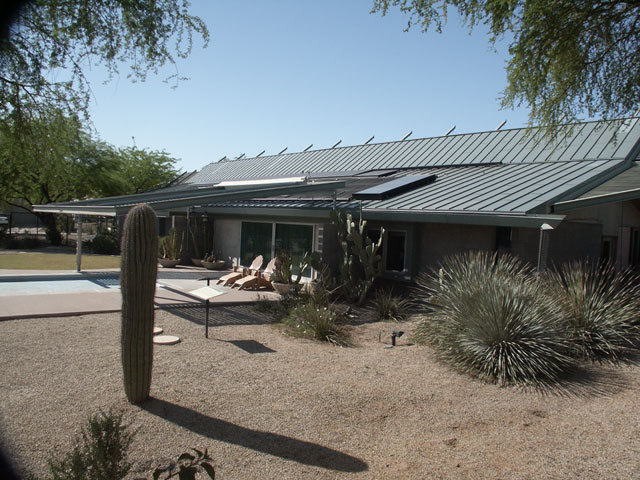 Award winning architecture by Jones Studio. ASU/APS Environmental Showcase Home. Originally designed as a cutting edge showcase featuring innovative and environmentally interesting materials, systems and concepts for APS, culminating as a highly successful marketing tool to gain community support for the Palo Verde Nuclear Power Plant Expansion.