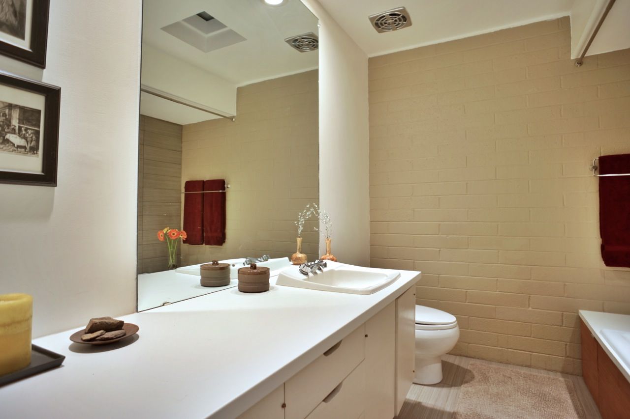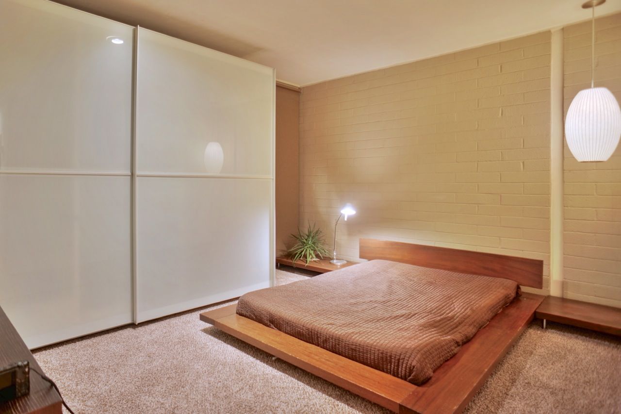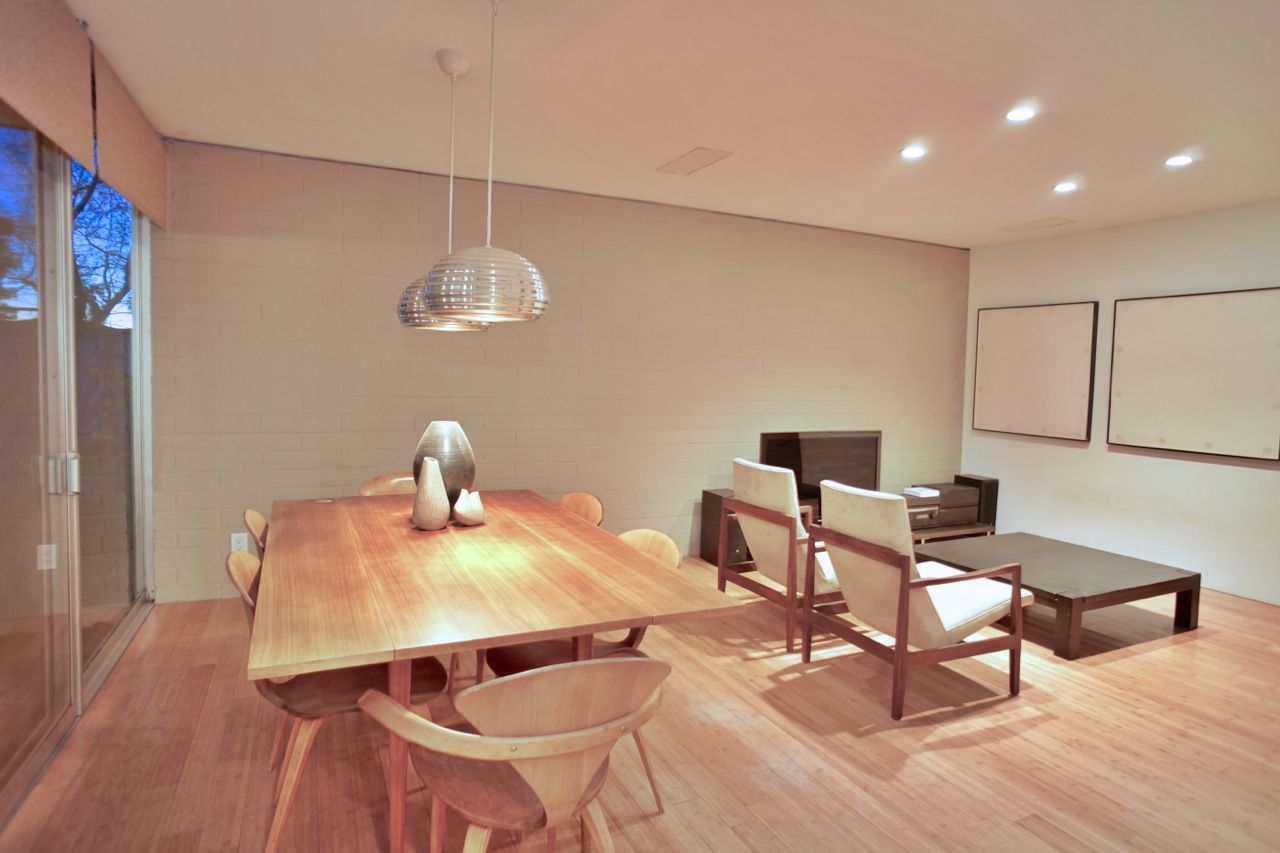 Each apartment contains a living room, kitchen, bath and a study as well as a private outdoor patio. Communal facilities include carport, storage and laundry; a central court that allows for light, space and beauty. Post and beam construction coupled with signature modernist materials as recognized in other Beadle designs. In recent years, the dwellings were lovingly restored to near original condition. Simply put, this is a signature iconic piece of local Modernism.