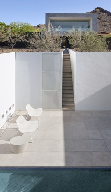 A superb balance of mass, materials, light, scale and perforation perfectly placed on a gentle, native landscaped, hillside slope. Wonderfully executed details; a wealth of minutiae to delight the connoisseur in a simple design that offers a carefree and comfortable plan that defines our desert-lifestyle. Stunning City-views anchor you to the urban hub; the nearby Mountain Preserve panorama calms the soul. The private pool is a sensory experience; providing an enclave that is both dramatic and serene.