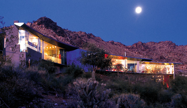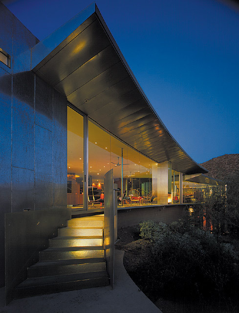 Originally known as the Townsend Residence, this stunning and sensitive design by Will Bruder is easily recognized as one of his finest. Included in numerous publications, this significant home certainly is one of the most expressive celebrations of architecture in the region. A delightful play of light and form, the materials include a palette of colored resins, glass, steel, concrete, Aluminum and woods. The gentle hillside site in Paradise Valley offers a superb view-panorama nestled in the eastern saddle of Mummy Mountain. There is generous space at nearly 5000+- Sq. feet, with four bedrooms, den/library and a translucent fiberglass screened motor court accommodating a three car garage.