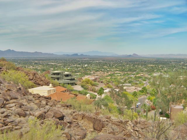 Atop one of the Highest View Sites on Camelback Mountain, this Architectural home was designed by Paul Christian Yeager. Nestled in a granite boulder-scape, the East face views are panoramic. The original detailing and plan of the home was wonderfully intact as of 2013.
