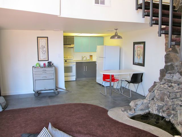 Each unit offers a generous 900 sq feet+- of MCM, and a serious dose of style not found elsewhere. Consider features such as the dramatic double volume living space, efficient open kitchen and a loft bedroom complete with curved walls. Most of the five units offered have been updated: Several retain the floating orb fireplace, sunken conversation pit and lava rock wall.
