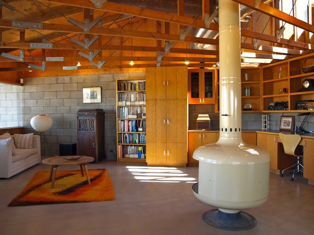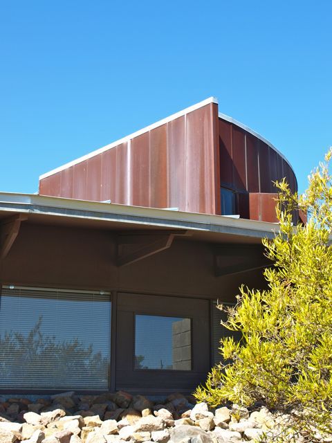 Using concrete block, exposed fir, concrete, tile and steel, this home is an early signature Bruder design from an era of imaginative desert homes. A custom exposed connection truss system ties the home together and allows for feeling of infinite spaces as well as superb light and ventilation.