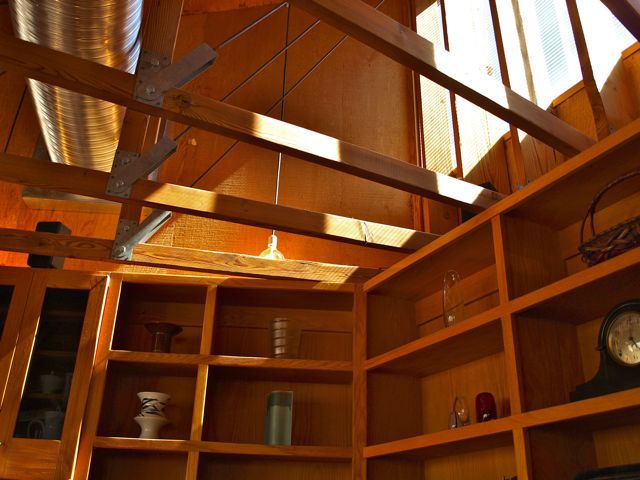 Embracing the land, it is anchored to the site with earthen berms. Six foot overhangs allow for flood of natural light without significant thermal gain. The roof is reflective metal. In addition to the upgraded Heat pump, there is a freestanding woodburning fireplace.