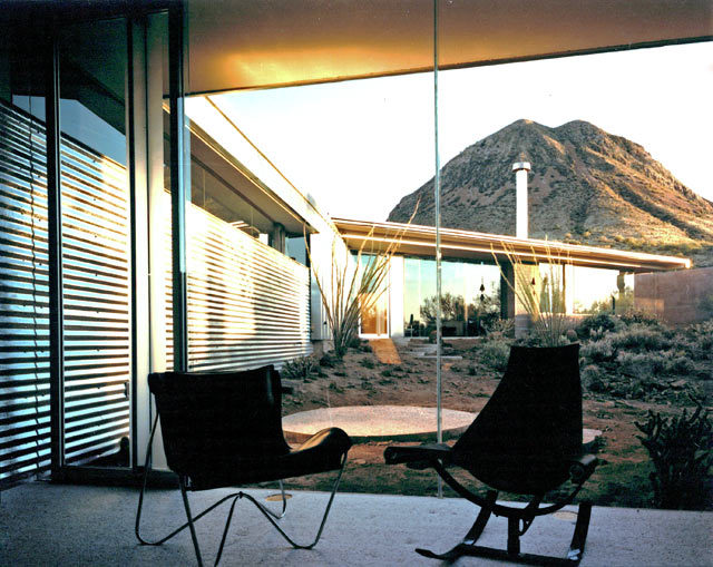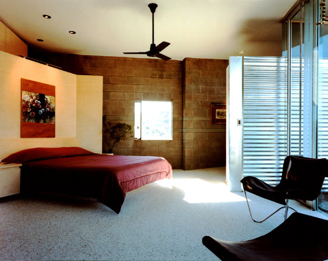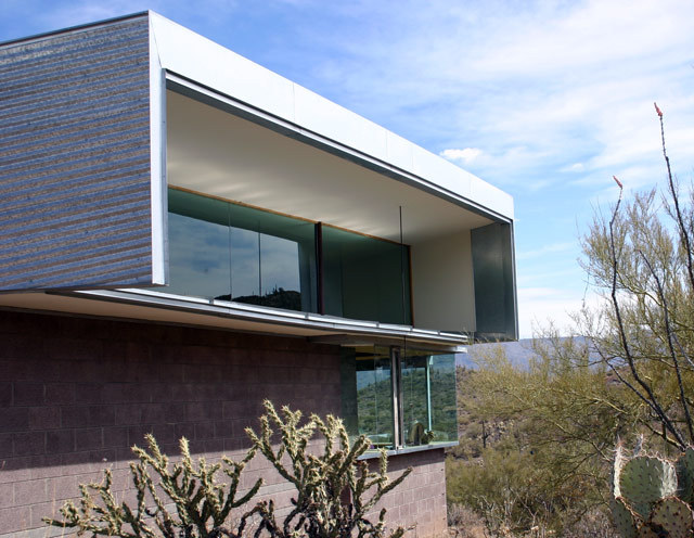 This Will Bruder modern home on 5 acres has won several architecture awards and is published both locally and internationally. Superbly sited on Gavilon Mountain, it is positioned to take advantage of the mountain views, twinkling lights below and panoramas as far as the eye can see. Material palette consists of butt glazed glass, galvanized metal, maple walls, cabinets and detailing, sand blasted block walls, glass tiles in the baths.