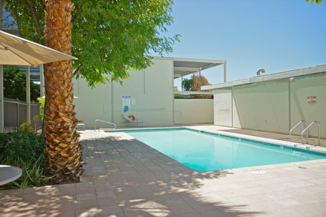 Widely recognized as a mid-century masterpiece, this poolside unit at Three Fountains designed by Architect Alfred Newman Beadle is one of the most sought after locations in this very desirable subdivision of Modernist condominium homes.