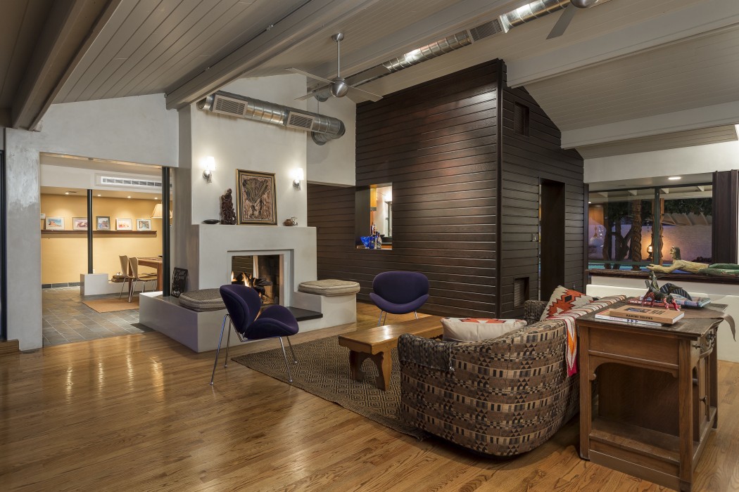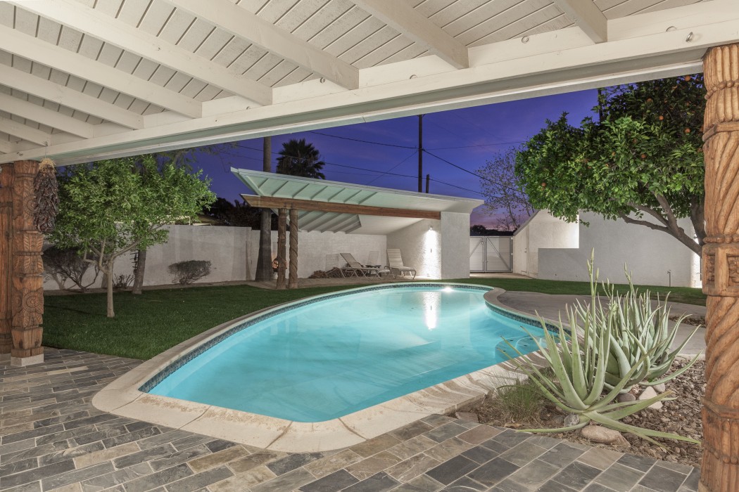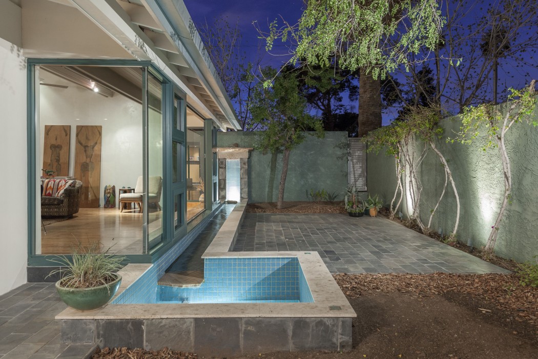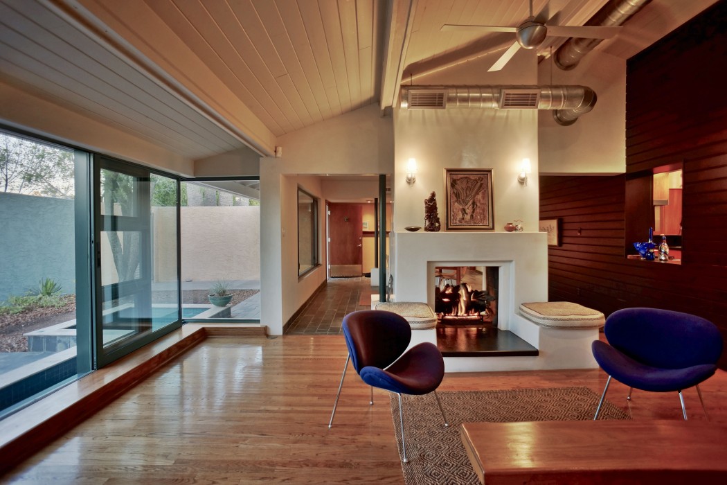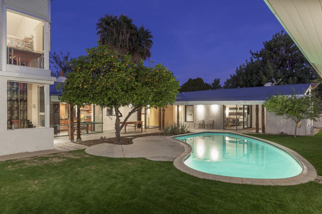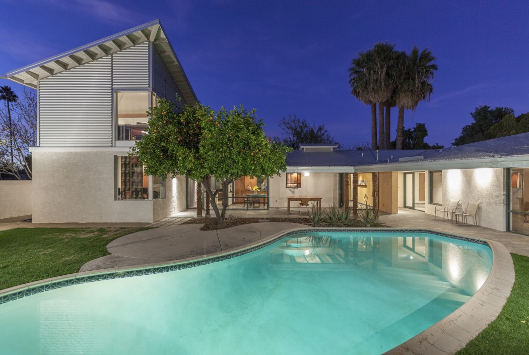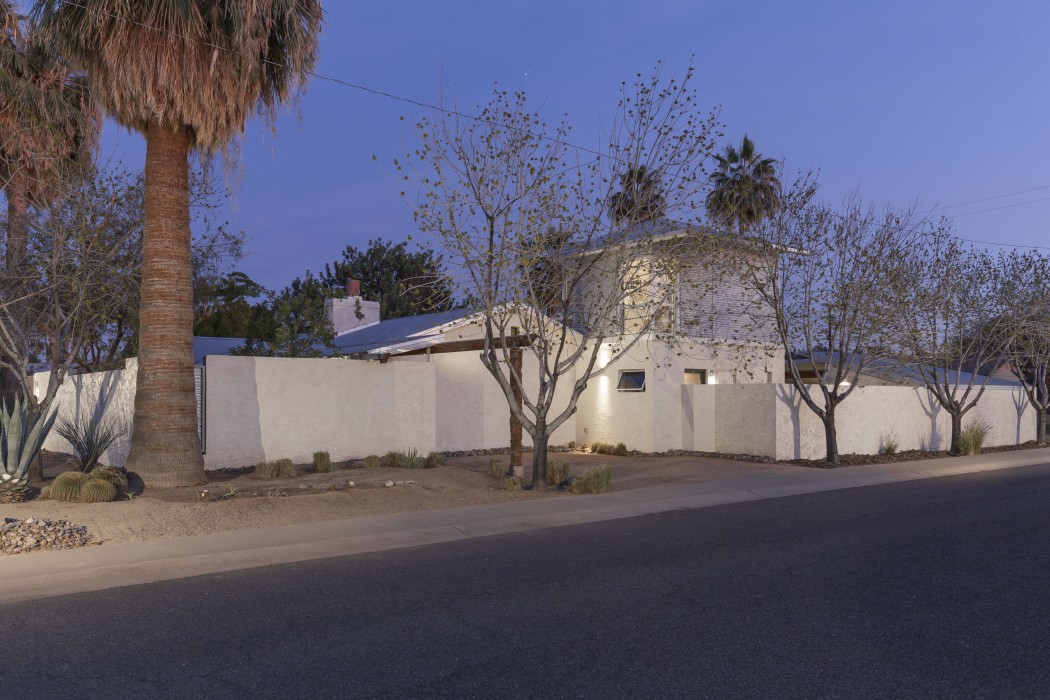 This Arcadia-area modern ranch home has been crafted by the architect/owners to offer an ultimate expression of Arizona Living. WIth it’s private courtyard entry creating an inviting entry, the vibe is irresistible. You are greeted with formal dining and a large, two-way fireplace to anchor the home firmly to the site. The Family room opens completely to the front court, allowing the soothing water feature to wash the entire space with calm. Hand plastered walls, paneled walls and ceilings, and beautiful hand-cut stone and select wood floors show the complete attention to details that sets this home apart from all others. Natural light is balanced throughout the home and each space remains unique. The Split master suite offers a generous sitting and dressing area, vaulted ceilings and the “Rumford” style corner fireplace add to the subtle elegance. The en-suite bath offers a generous shower and freestanding tub. An outdoor shower allows natural interaction with the exteriors complete with private patios. A deep and generous covered patio, sparkling pool, lush green turf lawn and separate covered pool veranda make for a cool respite in even the hottest of days.