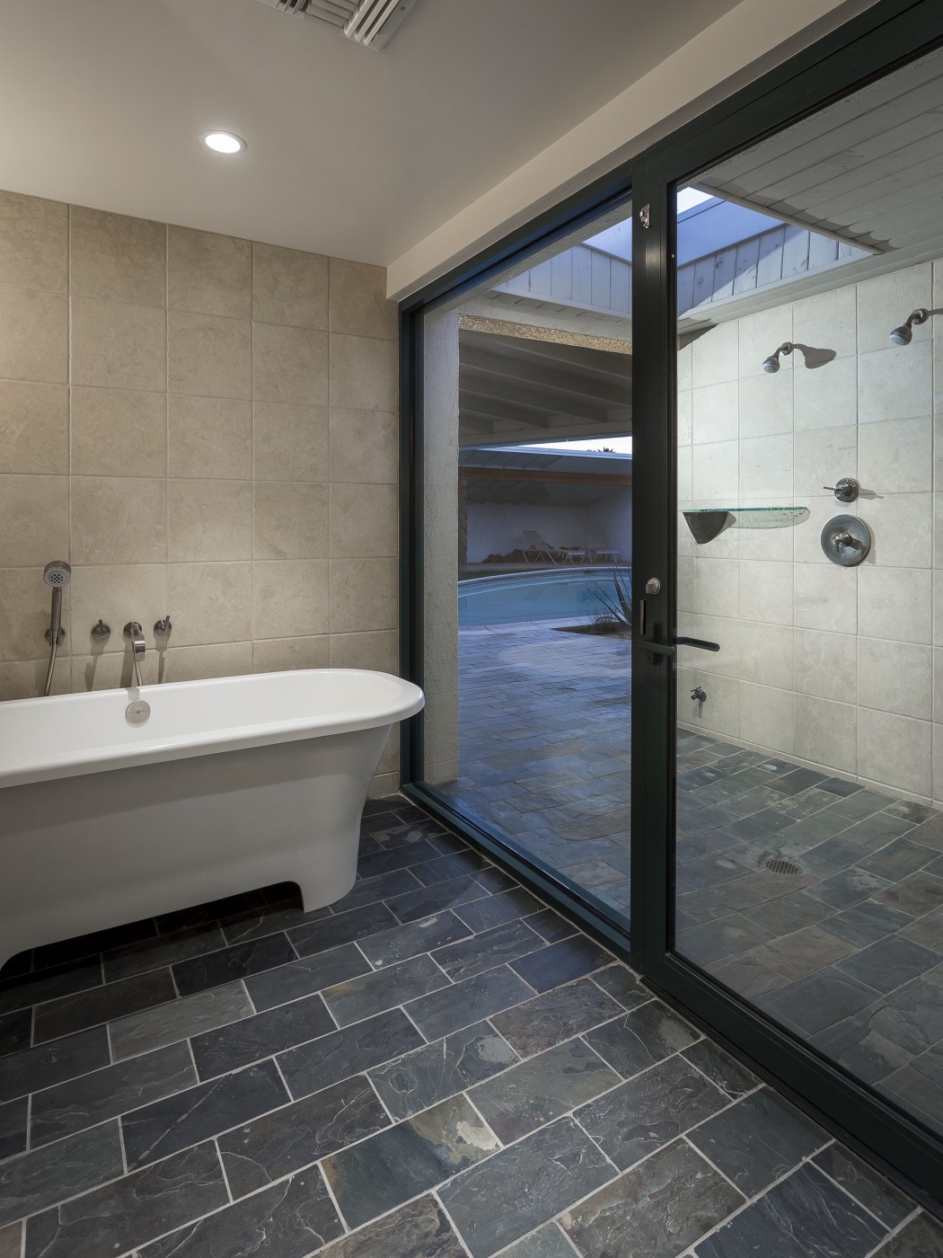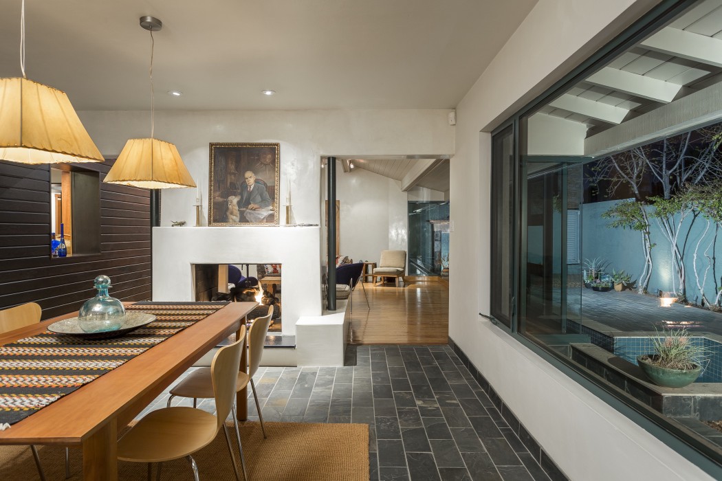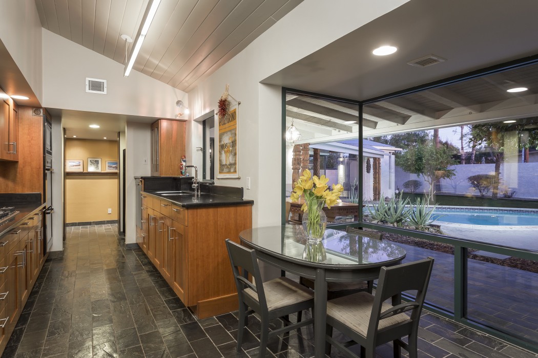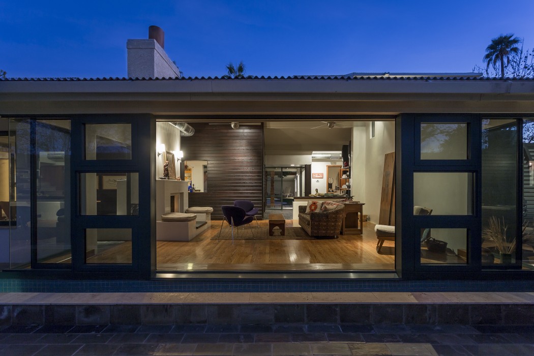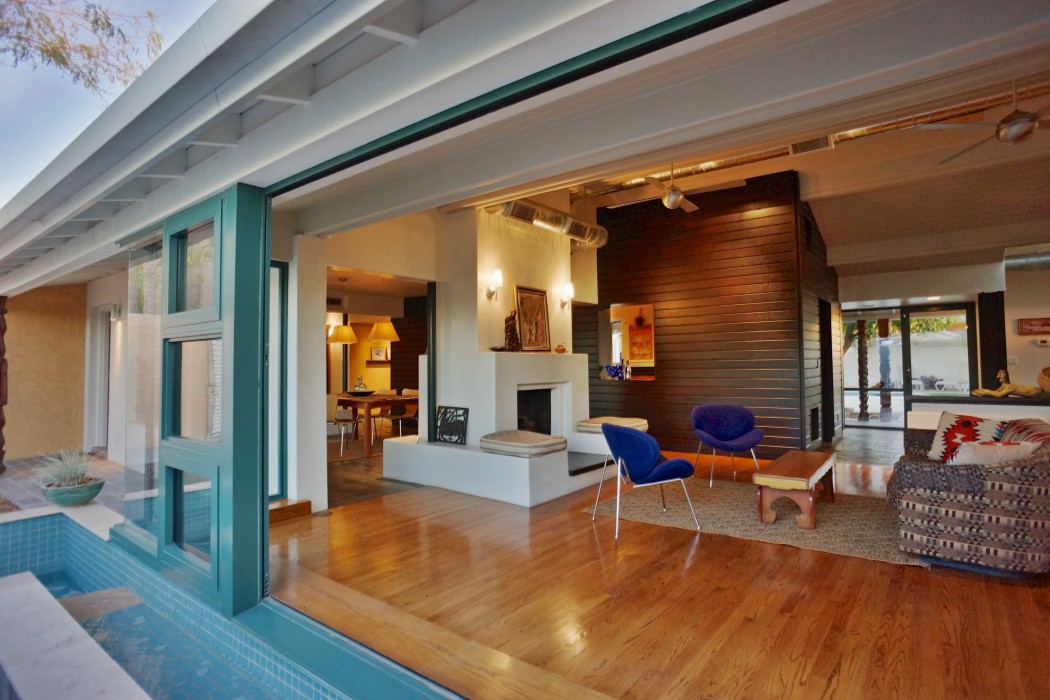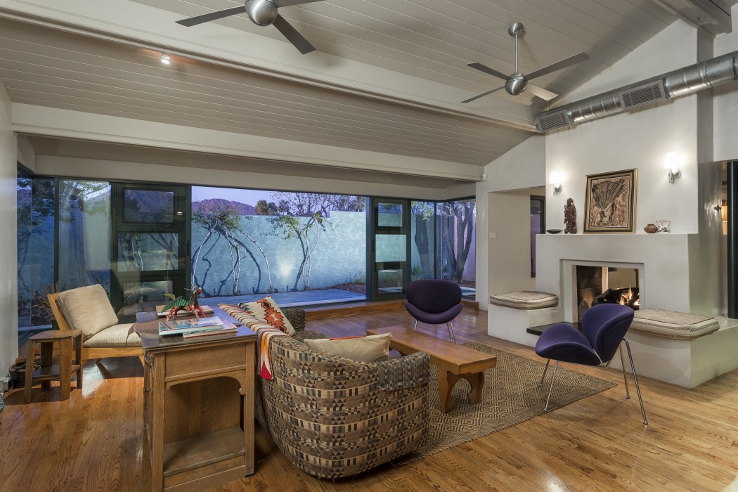This Arcadia-area modern ranch home has been crafted by the architect/owners to offer an ultimate expression of Arizona Living. WIth it’s private courtyard entry creating an inviting entry, the vibe is irresistible. You are greeted with formal dining and a large, two-way fireplace to anchor the home firmly to the site. The Family room opens completely to the front court, allowing the soothing water feature to wash the entire space with calm. Hand plastered walls, paneled walls and ceilings, and beautiful hand-cut stone and select wood floors show the complete attention to details that sets this home apart from all others. Natural light is balanced throughout the home and each space remains unique. The Split master suite offers a generous sitting and dressing area, vaulted ceilings and the “Rumford” style corner fireplace add to the subtle elegance. The en-suite bath offers a generous shower and freestanding tub. An outdoor shower allows natural interaction with the exteriors complete with private patios. A deep and generous covered patio, sparkling pool, lush green turf lawn and separate covered pool veranda make for a cool respite in even the hottest of days.