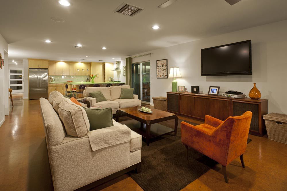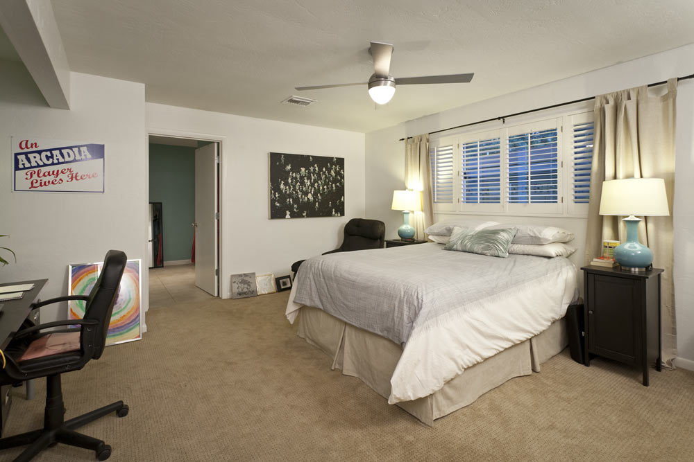 As you enter the home, you are invited into the family room with large open windows with views onto the beautifully landscaped yard. Two bedrooms and a split secondary Master Bedroom flank the sides. As you explore further, a beautifully remodeled kitchen and unexpectedly large living room in open floor plan greet you for a night of relaxation or entertainment as the full glass windows look out unto the pool and soft grassy yard. A surprise awaits as you sidestep down a hallway with vaulted ceilings and enter the Master Bedroom Addition with large Master Bath.