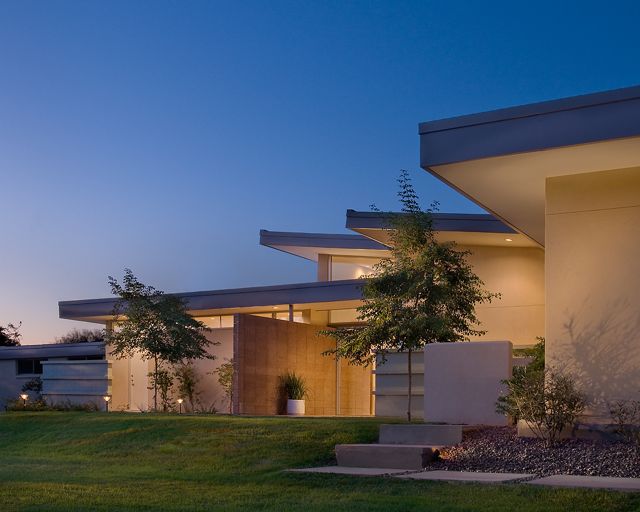 Designed by Michael J. Pickard, AIA, and completed in January ‘09, this light-filled showpiece sits on a near-acre irrigated Arcadia lot, offering stunning views of nearby Camelback Mountain. The strong horizontal exterior lines echos a Mid-Century Modern design ethos, but is fresh and innovative; a home that may draw inspiration from the past, but looks clearly forward.