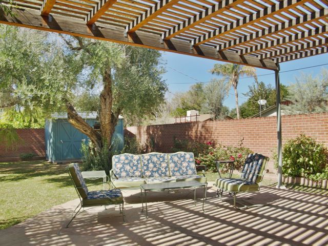 Some History: First, the neighborhood. Olivewood is one of the most popular Biltmore/Camelback Corridor area neighborhoods. Originally an Olive orchard, you can still spot the trees in this Irrigated enclave. And the House? This is one of those houses… The original owner was a skilled mason and it shows! From the pristine tile setting to the perfect brickwork set in lovely white-portland mortar, the craft will astound you! What’s more almost every interior wall is masonry. And yes: real plaster walls in superb condition. Outside the detail is there too with the back-yard walls all built in red-brick, even the driveway.
