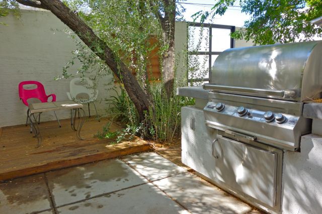 Highly upgraded – no detail was spared: red kitchen cabinets marry with cast concrete counters and superb detailing continues throughout with custom stair tread risers and pocketed mecco-style motorized shades. The Patios are sublime with wood decking, mature plantings and built in stainless steel BBQ.