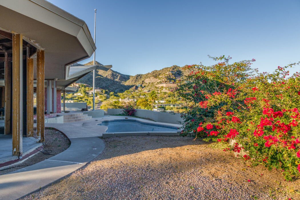 This mid-century modern home has been prepared for a complete remodel/renovation. The award-winning architect owner has started on the path of renovation taking this home down to clean stud walls and exposing all the original detailing and elements. Sporting an unequalled view, this home can be completed to nearly every imaginable level the next owner desires – all while retaining the unique architectural history and design found here. Designed in 1959 by LA Architect George Hall, the home has almost a ship-like essence. Design concepts have been discussed with the HOA and met with verbal approval so far. This site offers a level of disturbance not replicated today, making completion of this, or any new project generous by comparison of other lots. Selling due to relocation, the owners have gathered a complete research archive of history on the home as well as a wealth of reports which will be made available to the next owners. “as-is, where-is” cash sale please.