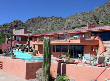 Increasingly appreciated for his modernist ethic and Frank Lloyd Wright influenced designs, this stunning hillside home offers modern updates and restoration, spectacular views of both the mountain and a sweeping panorama of downtown phoenix. You’ll find 5600 +- square feet, 4 bedrooms with separate guest quarters, fabulous master suite, plus a wonderful family/ theatre/game room second to none. A superb selection of materials blend into the gentle mountain setting including flagstone floors and patios, natural stacked stone walls, standing seam steel roof, and steel railing details. Amenities include updated stainless steel kitchen, a private putting green, play court, large swimming pool and private mountain setting. This talent Mid-Century Modernist left the Valley with a rich legacy of homes that reflect his Taliesin inspired design ethic, yet retain a true personal style that was revered locally by the likes of Barry Goldwater, who selected Yaeger to design his personal residence. A rare offering by one or Arizona’s most interesting architects.