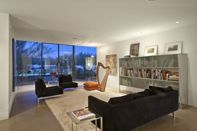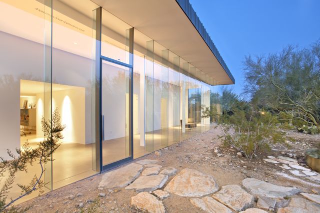 Looking for a Modernist Architecture of the highest caliber? This Award-winning home offers a turn-key Modern Design that is World-class. Like a cool breeze, this home of steel, glass, & concrete floats into the naturalized desert Landscape like a refreshing mirage. The ethereal nature of this home is defined by wrap-around galleries of full height, finned glass halls that flood the home with dappled light and allow access to both the interior spaces and a seamless connection to the outdoors.