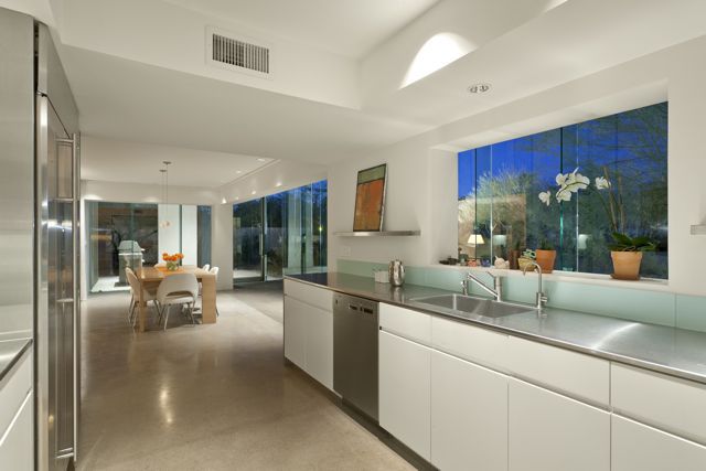 A complete rebuild of the home incorporates zinc siding, polished honed concrete floors, custom steel and glass doors and detailing only found in the finest of luxury Modern. Highly acclaimed and published, this home offers up a definitive architectural statement that is sophisticated and elegant, yet completely easy to live with. Enjoy a beautifully Native landscaped yard, unique pool and views of surrounding mountains. Completely detailed, completely unique!