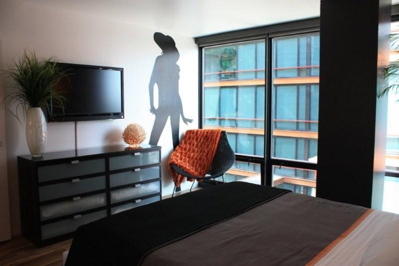 Fresh designer remodel within walking distance shopping, restaurants, nightlife. Great use of space with excellent light, plank African walnut wood floors, ostrich wallpaper, ebony cabinetry, and designer lighting. 5th floor view of the courtyard and its fountains. Large covered balcony offers space for private dining.