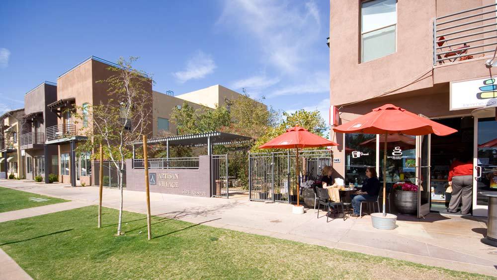 Designer colors throughout, along with roller blinds with dual blackouts in the bedrooms. Private 2 car tandem garage with room for storage, separate fridge, bikes and more. Well maintained green spaces and pool within Artisan Village. See additional links for downtown calendars and activities.