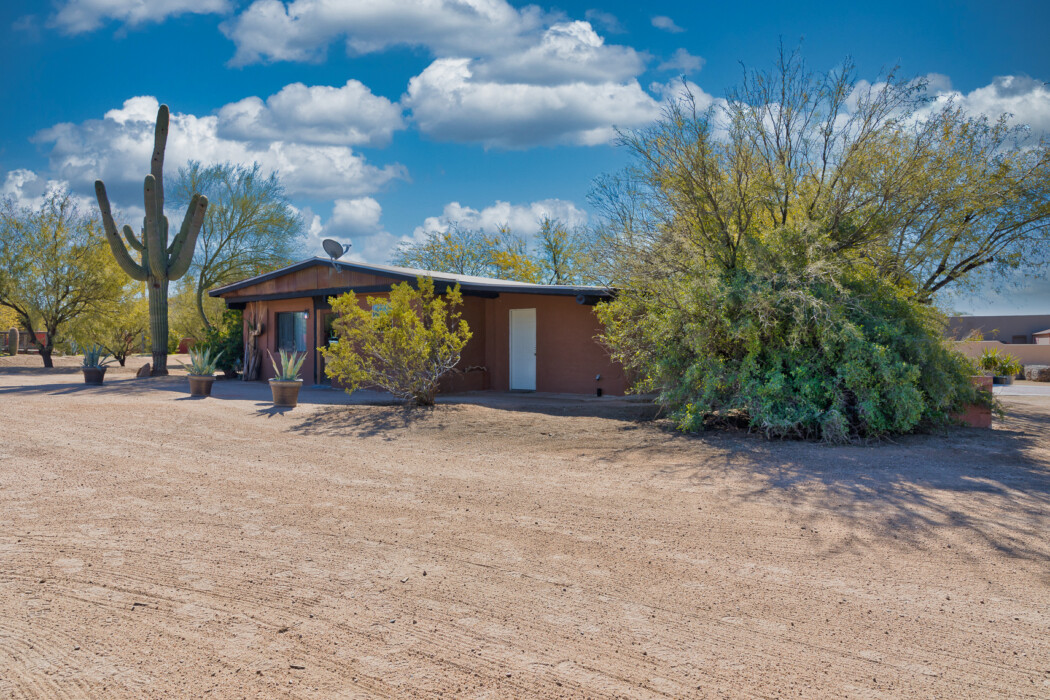 Very unique oasis in the midst of horse properties and Sonoran Preserves, this property has loads of potential! Let your imagination run wild as you experience the rustic charm and neatly groomed desert landscape of this roughly 1.3 acre well-positioned parcel completely enclosed by stuccoed block and wrought iron fencing. With only two owners since the early 1950’s, this former horse property (purportedly the old Dynamite Ranch) has a variety of structures in place has lots to offer with multiple structures providing a variety of livable spaces. Located on a county island, there is no HOA. This property could be ideal for AirBnB or other short term rental opportunities. While it still feels as though you are tucked away in a remote corner of the desert, this property is conveniently located minutes from shopping and dining with easy access to both the 101 freeway and nearby desert trails.
