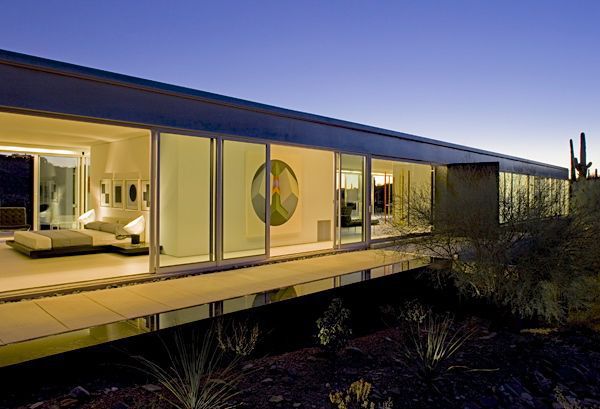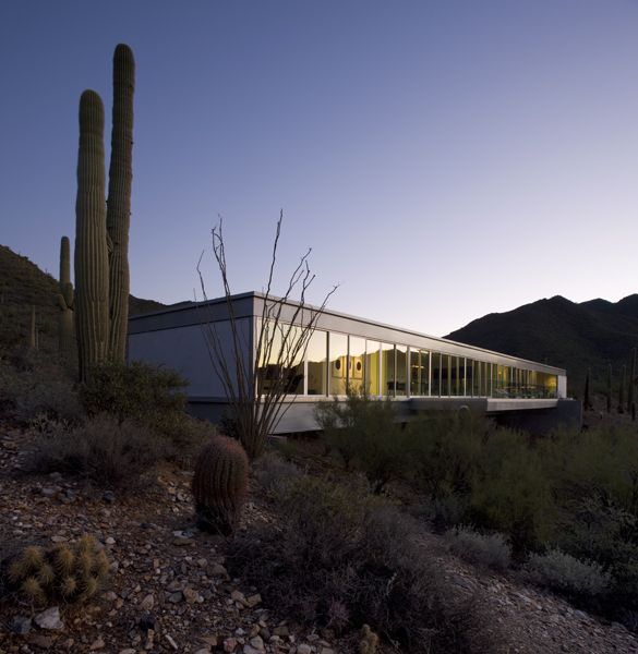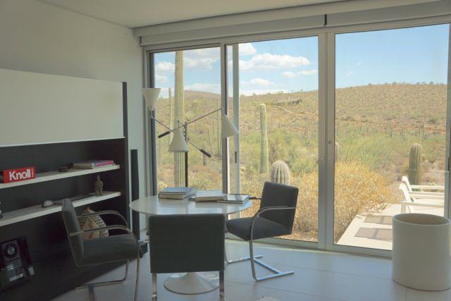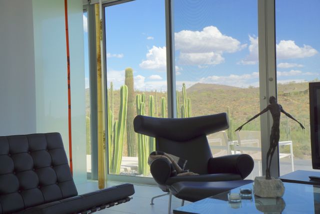This impeccable Modernist home is a residence of museum-like quality that celebrates the juxtaposition of Nature and Machine like perhaps no other in the State. Spanning eighty feet across the lot and over a lush native arroyo, the home becomes a “Living Bridge” that allows the occupants to enjoy a unique connection to the beauty of the Sonoran Desert.
