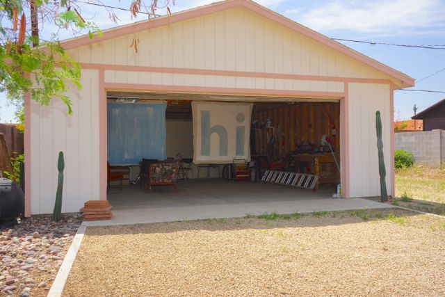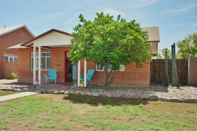 This home has one feature you almost never find here: A separate two car garage and a fully fenced yard with gated rear access, perfect for shop, cars or studio! Sunny eat-in kitchen has plenty of cabinet space and the rear laundry porch make for easy clean up. Mature citrus & a shaded front porch complete the scene! Updated, ready to move-in and cute as can be! Hurry on this one! Range/oven does not convey