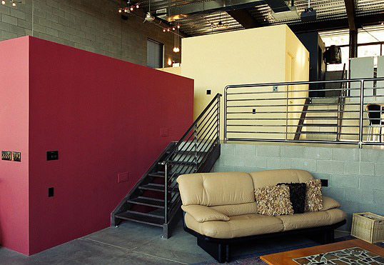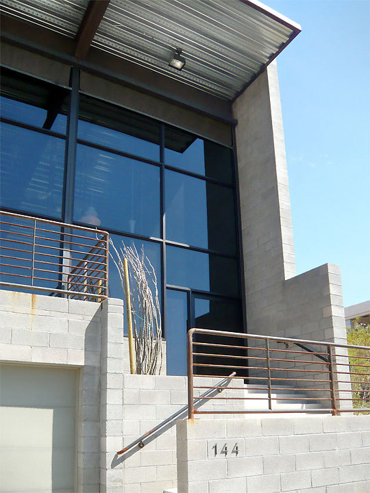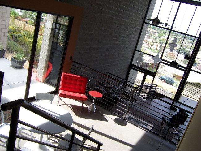 The interior is defined by rectangular “cubes” that define the living spaces yet gives the impression of one great volume. The sweeping views to the urban downtown landscape are stunning, and the sunsets are awe-inspiring. What’s more you get the distant mountains displayed at the base of a nighttime carpet of lights! The dramatic masonry mass is comfortably anchored to the site, with soaring volumes both warm and inviting. Interior finishes are great and the detailing is smart and fun.