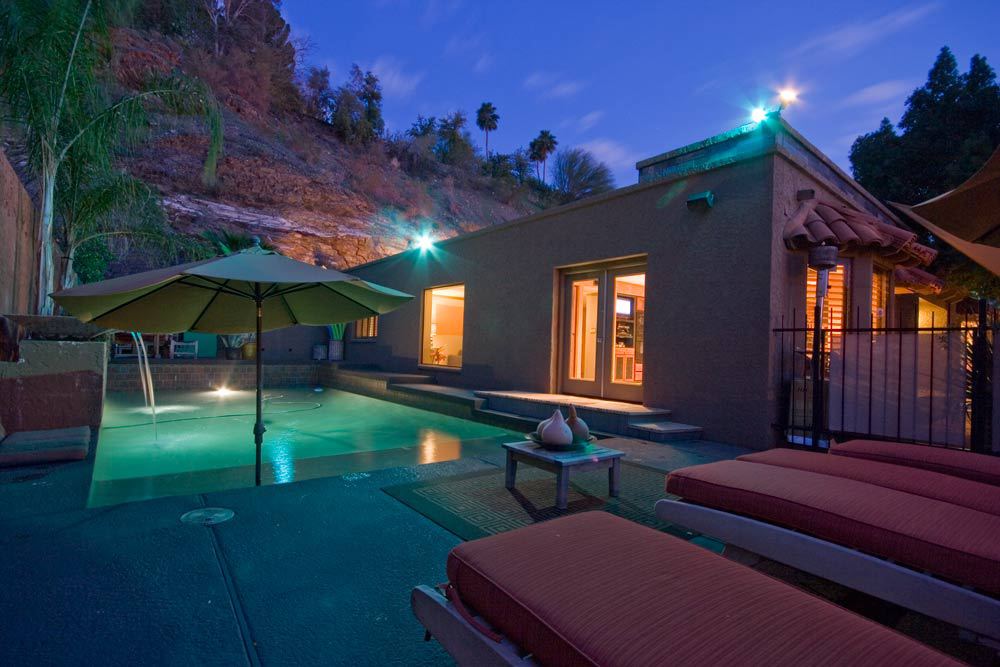 Beautiful private hillside home has been completely renovated inside and out! A perfect home for entertaining..court yards, heated pebbletech pool with baja soaking shelf & heated spa, outdoor kitchen with stainless fridge and Jenn Air Grill, gas fire places, bbq, bar and so much more.This home sits high and backs to the mountain with dramatic views. Gourmet Jenn Air kitchen concrete counter tops. Two master suites one w/an outdoor shower. Living/media room w/surround sound, gas fireplace, custom built ins featuring accent lighting and ebony entertainment cabinets with slide out shelving.. Music throughout the home!Dumb waiter for convenince. Located in Biltmore Heights II & w/in walking distance to Madison Heights School, professionally designed wall finishes throughout.