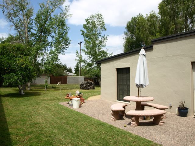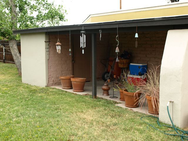 Along with the mature trees (citrus, cottonwood and more), the property includes the original Adobe outbuilding/carport, which proudly showcases the hand made adobes, still viable and functional, decades later.