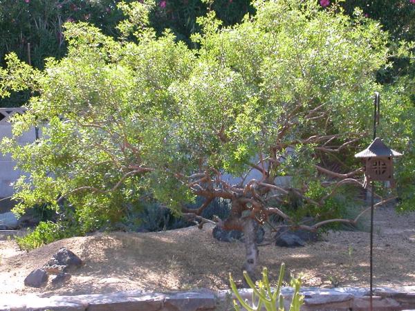 Xeriscaped with meticulously pruned trees