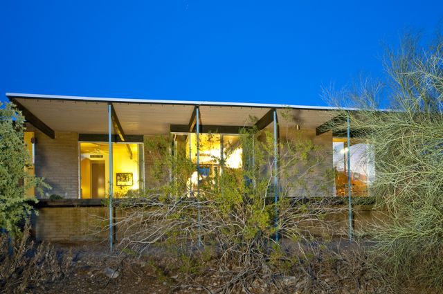 Architect Blaine Drake was one of Frank Lloyd Wright’s original apprentices and went on to establish his Arizona practice in 1945. This house is a beautiful study in light and space; a perfect example of how delicately architecture can sit upon the landscape in the Desert. Adjacent to a wide and beautiful arroyo, this home features a large walk out deck to the west, which opens up the home to the views and natural landscape.Blaine Drake retired from architectural practice in 1985. His remaining buildings are indeed very special.