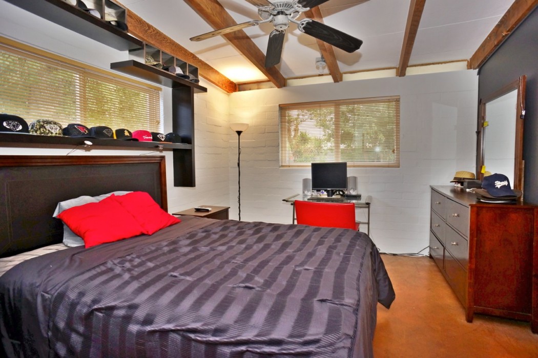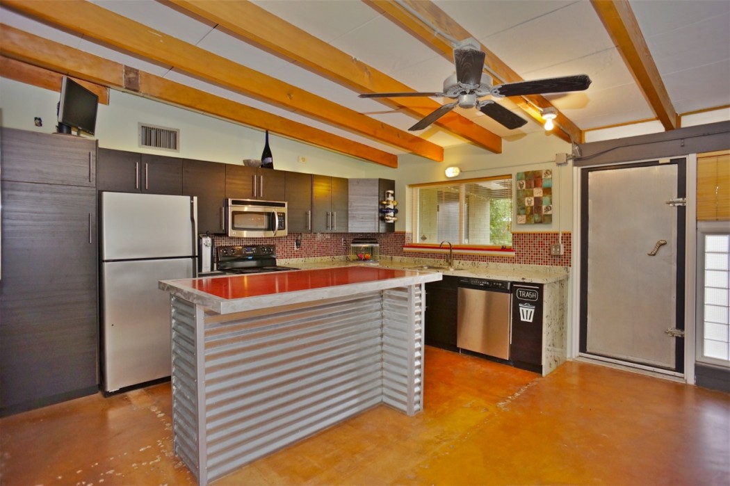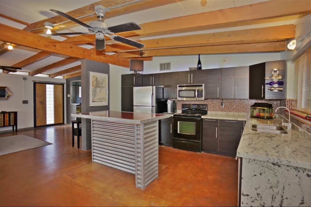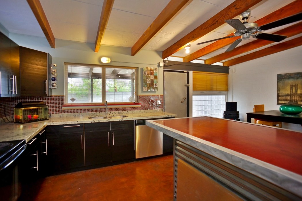 Your search for affordable Mid-Century Modern is over! This Ralph Haver designed home in super desirable Marlen Grove is offered at one of the best prices we’ve seen in a while, and sports some recent updates that make is special! Updated Kitchen with stone counters and Modern cabinets, finished concrete floors, updated baths, large laundry room and a revised floor-plan that makes for great space! Tree bedroom, two large baths, kitchen island, covered patio and decorator details and lighting to wow you! Exposed and restored “Haver” beams, freshened ceilings, glass block and a corner lot for full yard access. Enjoy now wonderfully finished or expand to your hearts content. Location is perfect for the professional home office or studio. A super buy for true Mid-Century Modern!