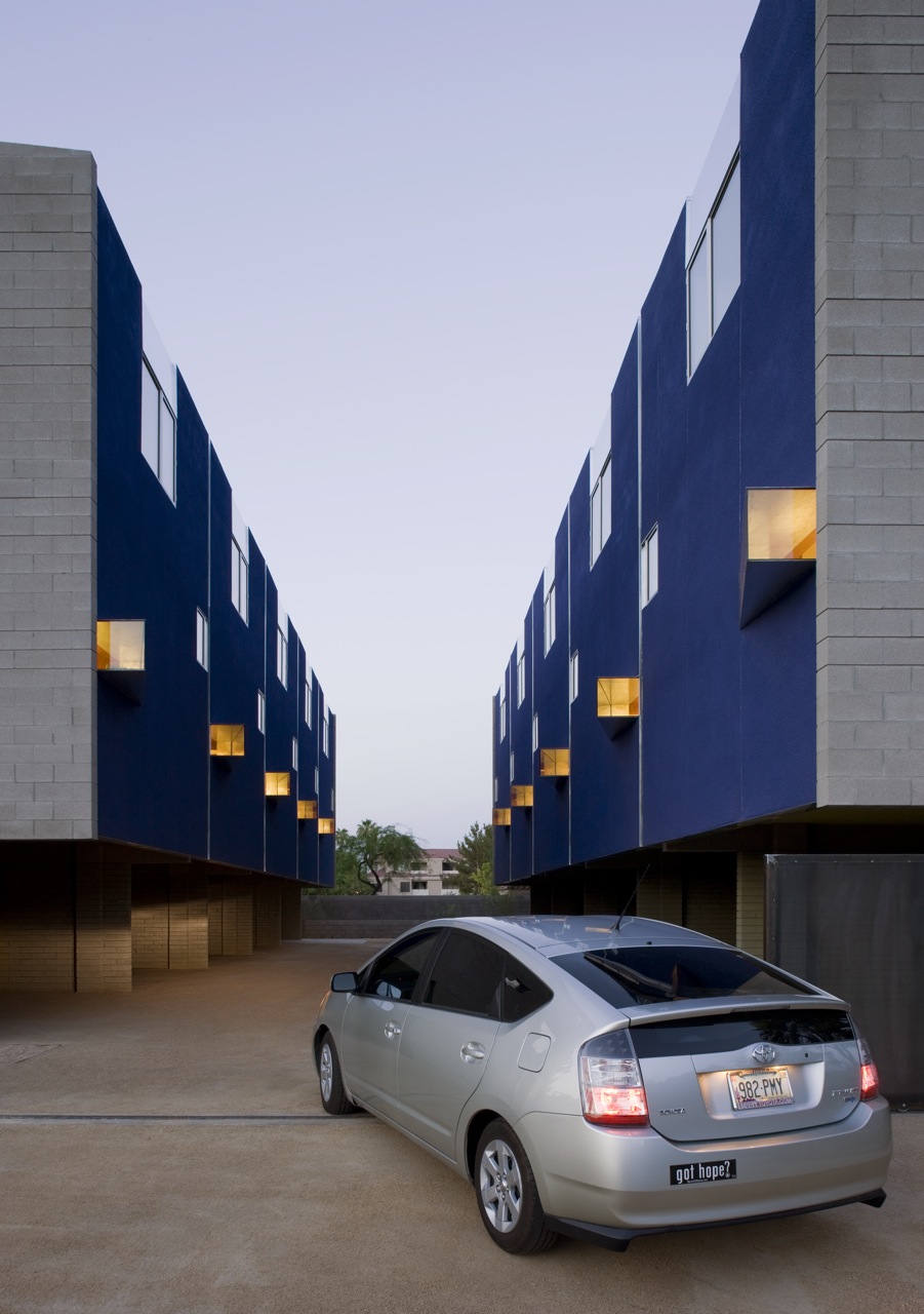 A quintessential design by Will Bruder Architects, “Mezzo” offers amazing modern architecture and select materials that make this urban design a world-class experience. The ten-unit complex is split into two parts, with a secured auto courtyard bridging both sites. “Mezzo” is defined by attention to detail throughout and thoughtful touches, typical of a Bruder project, including exposed concrete block construction, simple minimized walls and striking proportioned windows, in the form of ‘pop-out’ bay windows, which emphasize an indoor-outdoor relationship to the elements.