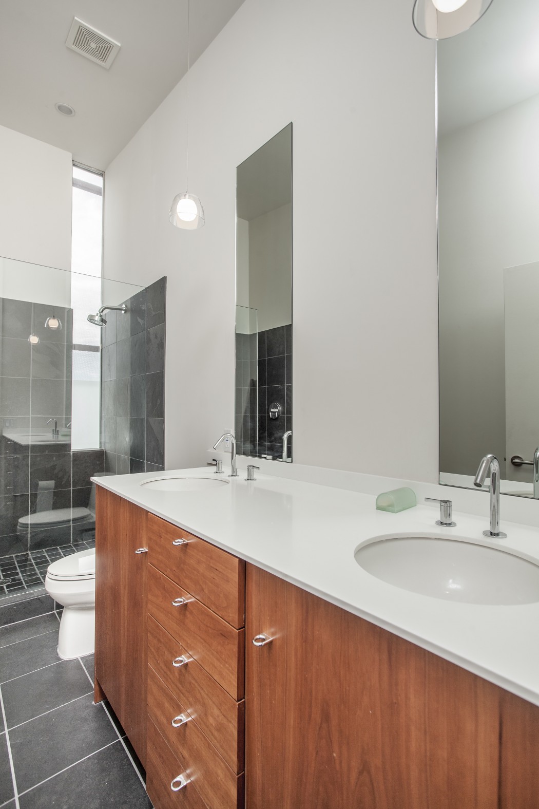 The three-floor urban home is mindfully scaled and modest; a fusion of quality, comfort and aesthetics that reflect the architect’s artful style, but do not conflict with the neighborhood’s Mid-century character. Immaculate condition and attention to detail throughout: This townhome-style condo has one of the best locations in the complex, tucked in the southwest corner of the complex on the Whitton Ave. side, offering a quiet location with great views from the home!