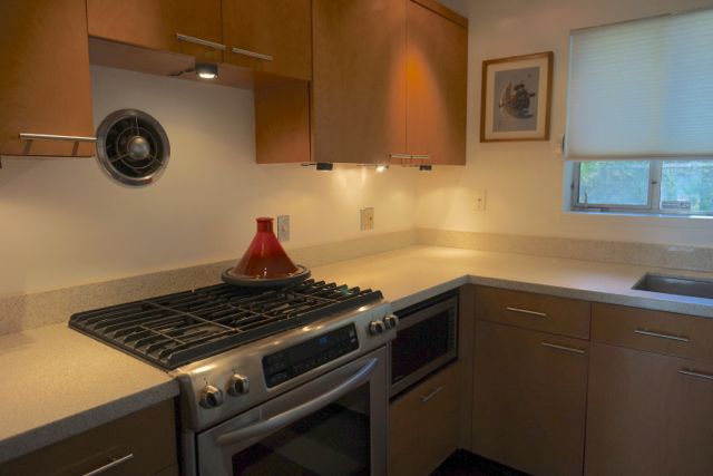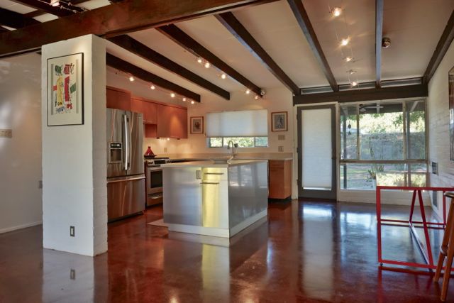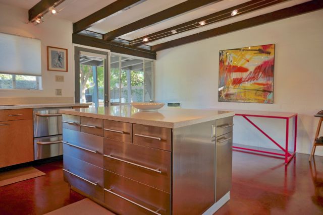 The kitchen is an entertainers delight with stainless steel cabinet center island, gorgeous composite counters and multi-burner gas cooktop. Interior cable lighting assures ample light for any task. Signature Haver details remain including vaulted, exposed beamed ceilings and clerestory windows throughout. Professionally finished concrete floors add the the Modern Vibe.