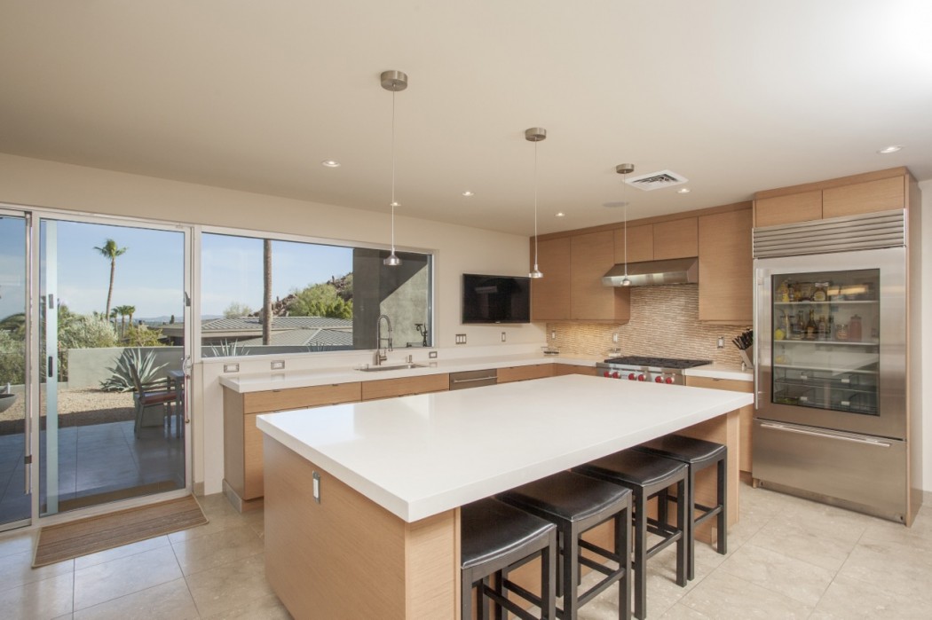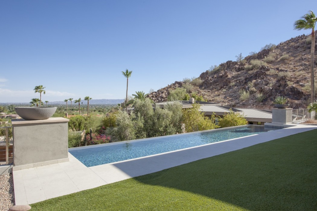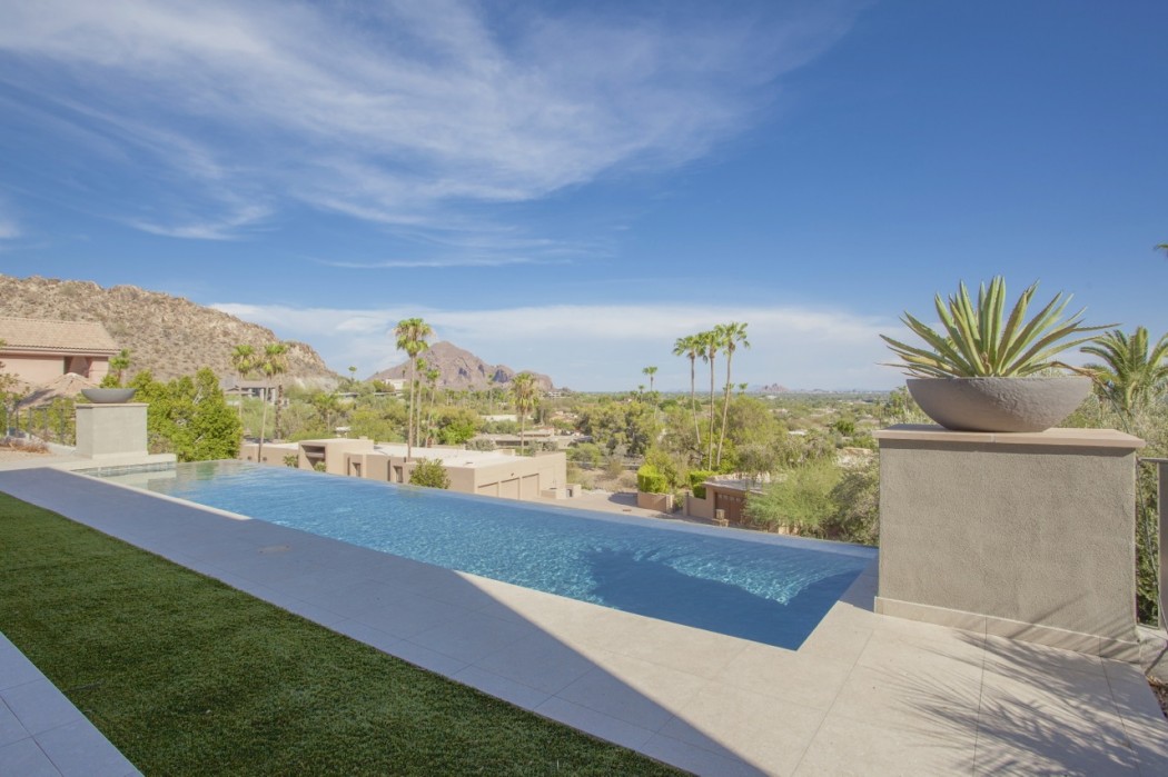 Relax in style under the cantilevered patio and enjoy a sweeping view of the Valley from Camelback Mountain and beyond.  The versatile floorplan offers three bedrooms, office/den, large media room, formal dining, view living room and a luxury cook’s kitchen with upgraded appliances.  Outdoor living with oversized patio perfect for entertaining around the pool or kick back and enjoy the outdoor fireplace and built in BBQ kitchen and views, views, views. The Architect thought of everything in this design… It’s the turn-key perfect home of your dreams!  Bring your clothes and enjoy!