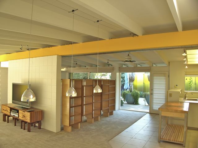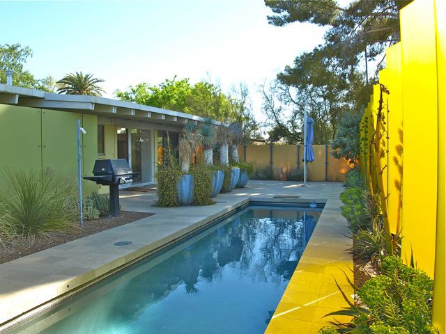 The enjoyment and day-to-day livability of this signature mid-century modern home was dramatically increased modest expansion and thoughtful changes to the interior, while detailed development of outdoor living allows the home to embrace and use every aspect of the site. Illuminated color resin panels transform the surroundings from a secluded and contemplative desert garden in the day: then into a lively social space at night. This inspired design speaks volumes about the potential of theses very special and sustainable urban homes.
