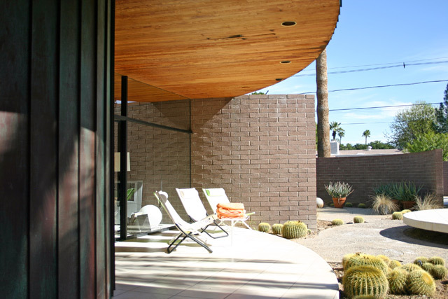 A rare find, this home with its North Central Phoenix location offers expressive curvilinear architecture by one of the Valley’s finest modern architects. The home includes four bedrooms, large kitchen, 3 baths, two-car open garage, pool, spa and more. A dynamic grouping of materials include patina copper fascias, wood ceilings, saw-cut white concrete floors, sandblasted brick, etched glass and highest quality carpeting and built-in closet systems. This is one home that is not only unique; it is highly comfortable with warm, calming interiors. Excellent in/out relationships interact with inviting patios that wrap a large, 1/3+- acre, lush landscaped lot, perfect for the entertainer or family alike. An excellent example of Contemporary Living. $885,000.