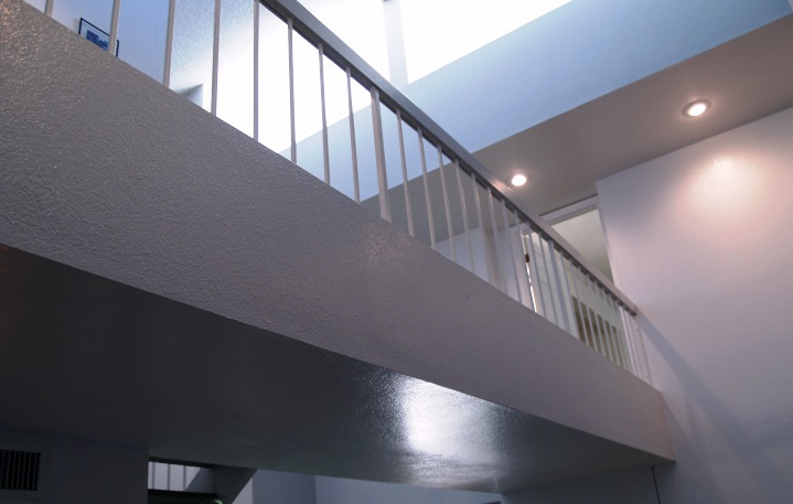 Contemporary loft like feeling with high vaulted ceilings, floating staircase, catwalk, dramatic fireplace, concrete floors. Owner remodeled kitchen – newer cabinets, counters, appliances. Delightful patio area with French doors off kitchen / dining area. Small, private enclave of townhomes in an excellent location in North Central.