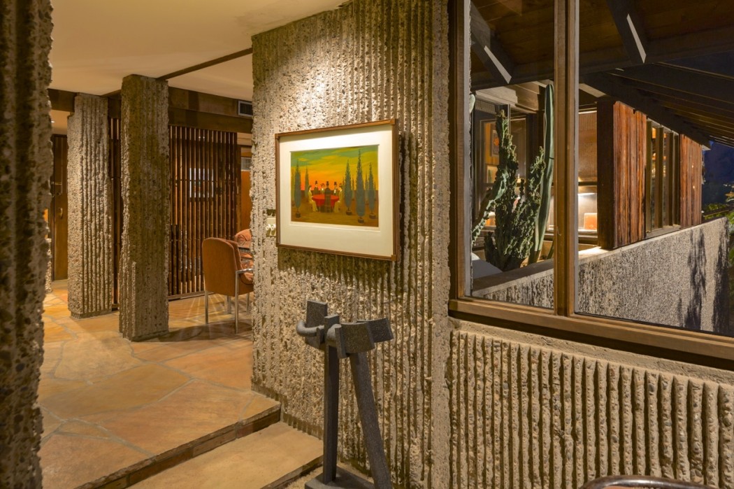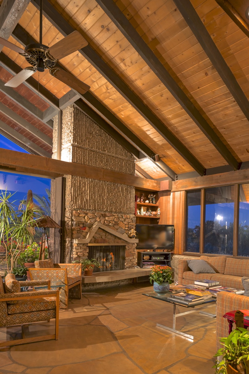 This inspired piece of Valley Mid-Century Desert Modern Architecture is nothing less than a work of art.  Designed by in 1965 by George H. Schoneberger, Jr., AIA (well known for his wonderful Regency towers, once the highest residential tower in Phoenix), the house is anchored to the gently sloping site on a cast concrete base that visually weights the home.  Heavily textured, this home is a study in lasting materiality;  Exposed aggregate concrete, wood beams and ceilings, and siding of rare and dramatically beautiful pecky cyprus complete a warm and enduring look.