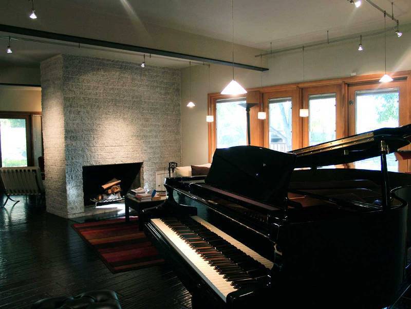 mosaic. Natural wood Pella windows and doors throughout and extensive