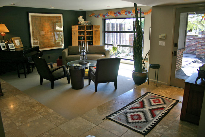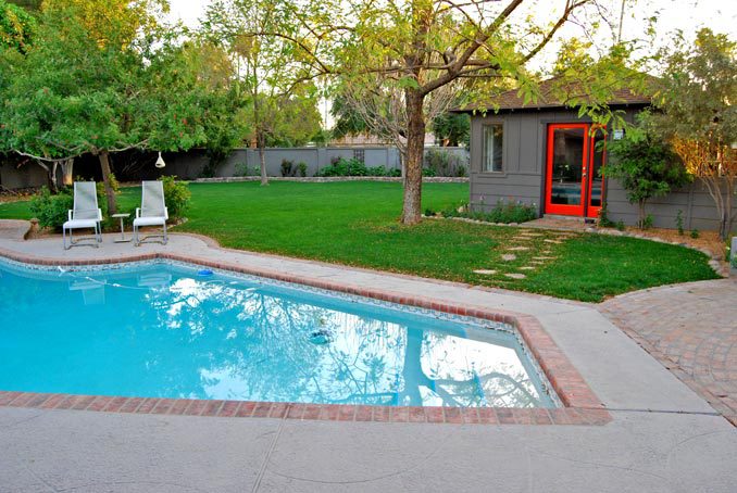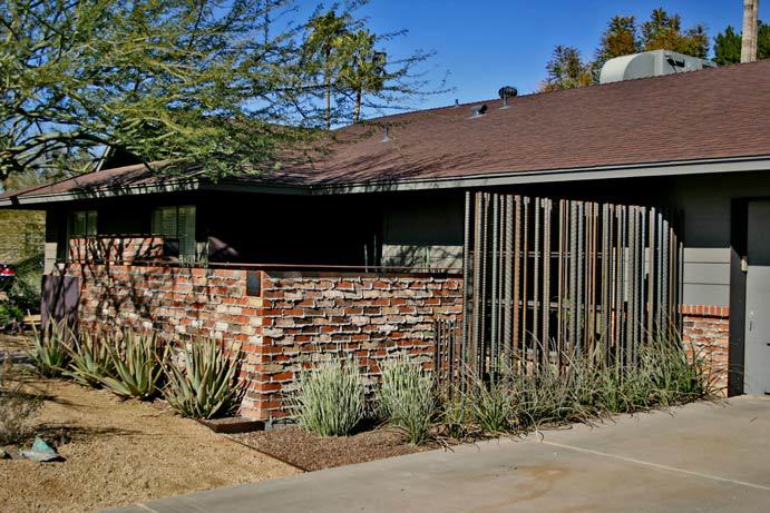 A place to call home: This generous Modern ranch-home has architect inspired detailing and long-term pride of ownership that shows from the richly landscaped lot to the Brick and Steel detailed patio/entry designed by Architect Luis Salazar.