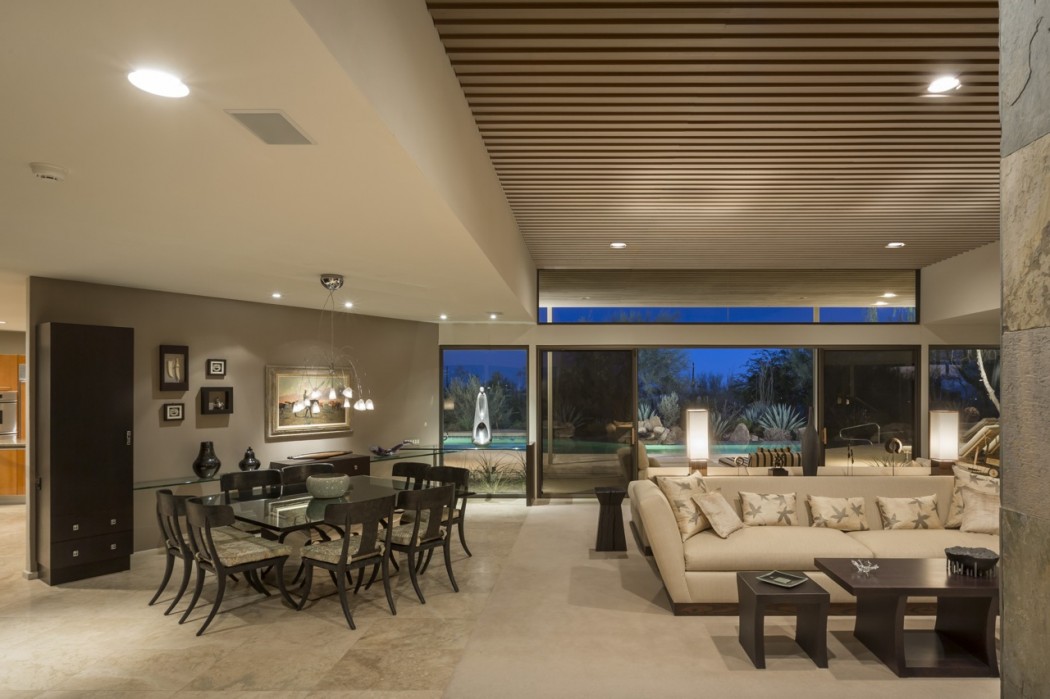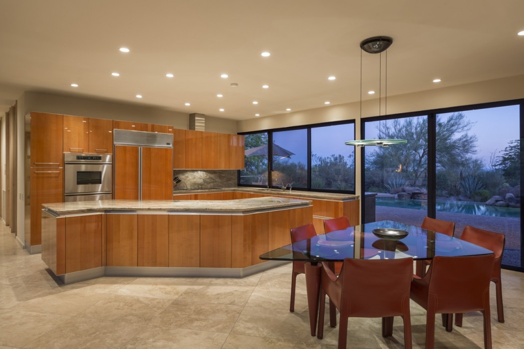 This delightful Modern home was design by Architect Alfred Newman Beadle and offers a recent interiors update by Elizabeth Rosensteel Designs. We are delighted to re-introduce it as one of Beadle finest works. Remarkable for its integrity; the home offers four bedrooms plus office in the main house, and an attached two-bedroom guest suite. The original owners fully updated the master suite and the world-class contemporary kitchen is fully modern with Snaidero cabinets and top-tier appliances. In addition to the guest house, there’s abundant storage including 3-car garage and workout room. The deep patio opens to a falling-edge pool, spa and N/S Tennis Court that’s perfect for entertaining. You’ll love this five-acre desert lot with views of Troon, Pinnacle Peak and a vista of city lights.