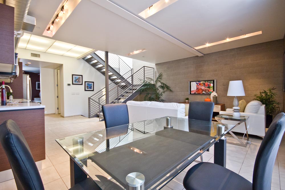 Refined condo-home in Downtown Tempe! Walk to Light-Rail,Rio Salado,Mill Ave, ASU & more! 3-story vertical condo offering innovative architecture, open floorplan, light-filled interior, huge roof-deck, and amazing materials: Euro wood kitchens, Stainless Steel Appliances, Danze Chrome fixtures, Solid Surface counters, tile floors & superb detailing. Closets have been improved with Elfa systems which can be configured any way you like. Custom top-down or bottom up window coverings.