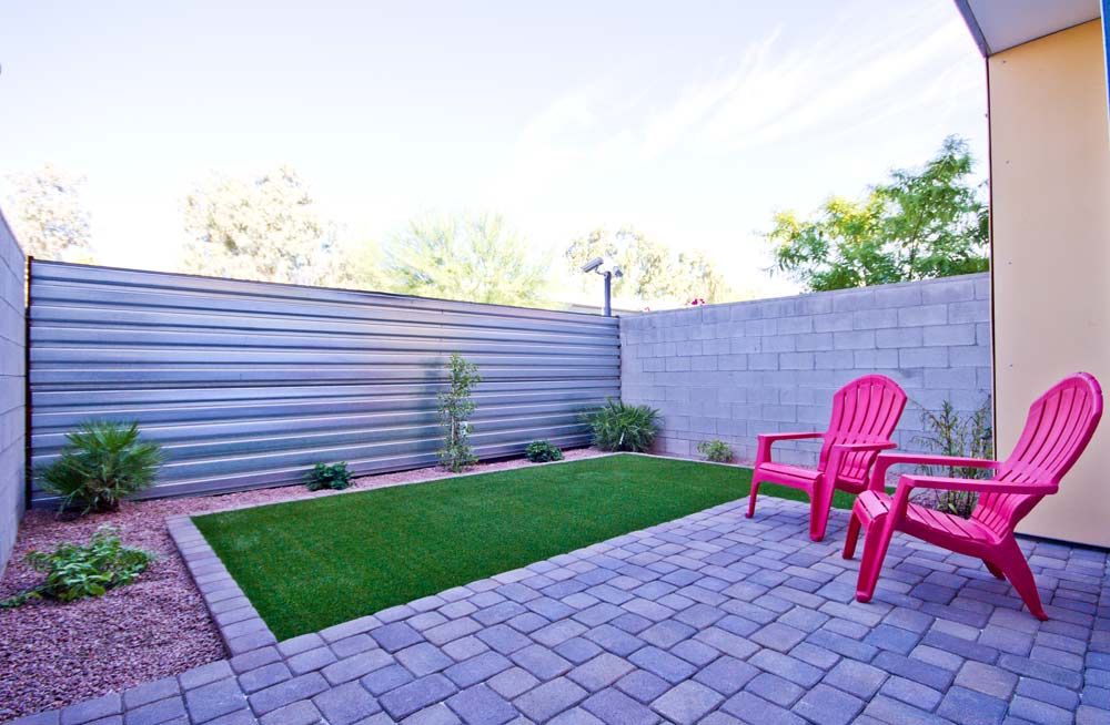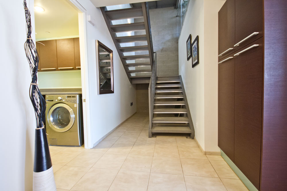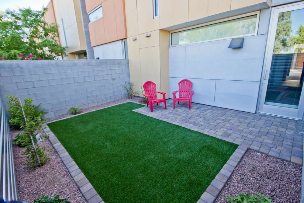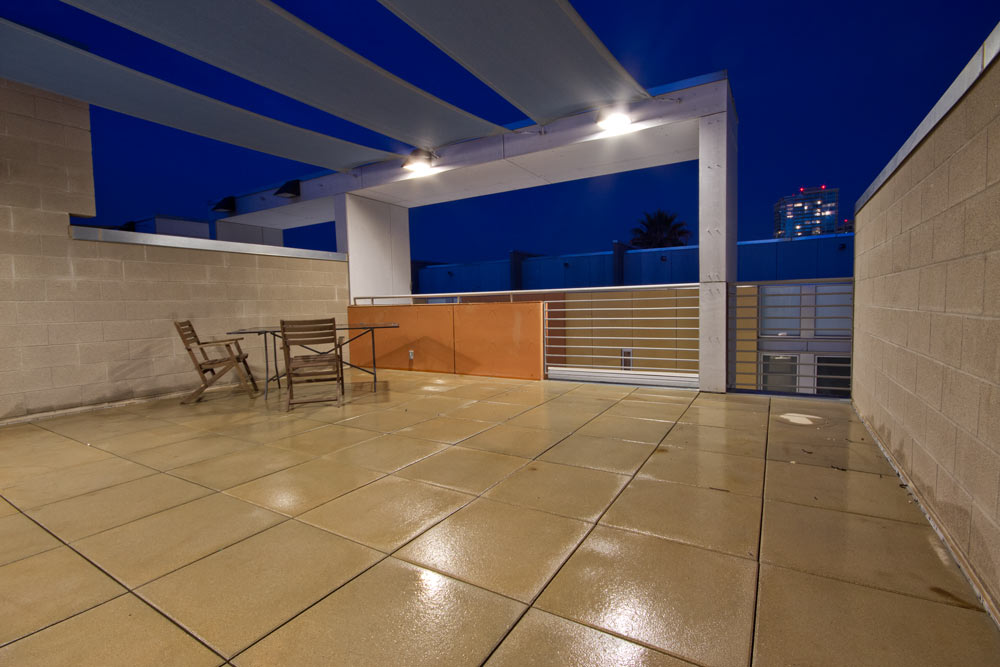 Backyard is suitable for outdoor entertaining or gardening. Enormous roof deck that’s like an outdoor living room with shade system and misters. Secure gated community with 2 parking spots and storage in your carport. Electronic access to unit as well.