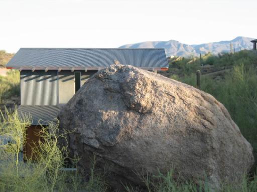 This desert home rests among natural boulder out-cropping’s at the base of Black Mountain surrounded by indigenous plants and commanding views that change throughout the day as the Sun passes over. You are greeted with the stunning entrance view through floor to ceiling glass across the negative edge salt water pool to the most impressive boulder formations on the mountain. Polished concrete floors, granite counters, stainless appliances, honed concrete block, corrugated metal, and bamboo only begin to set the stage for this desert oasis. The main house with 2 bedrooms, 2 baths, great room and large kitchen is across the courtyard from the 2 story guest-house, with the 3rd bedroom and bath, loft office with amazing views and large roof deck, which is a great place to watch the Carefree fireworks! Many great restaurants are just 2 minutes away, the new Luc’s, Spotted Donkey and Brinkley’s to name a few.