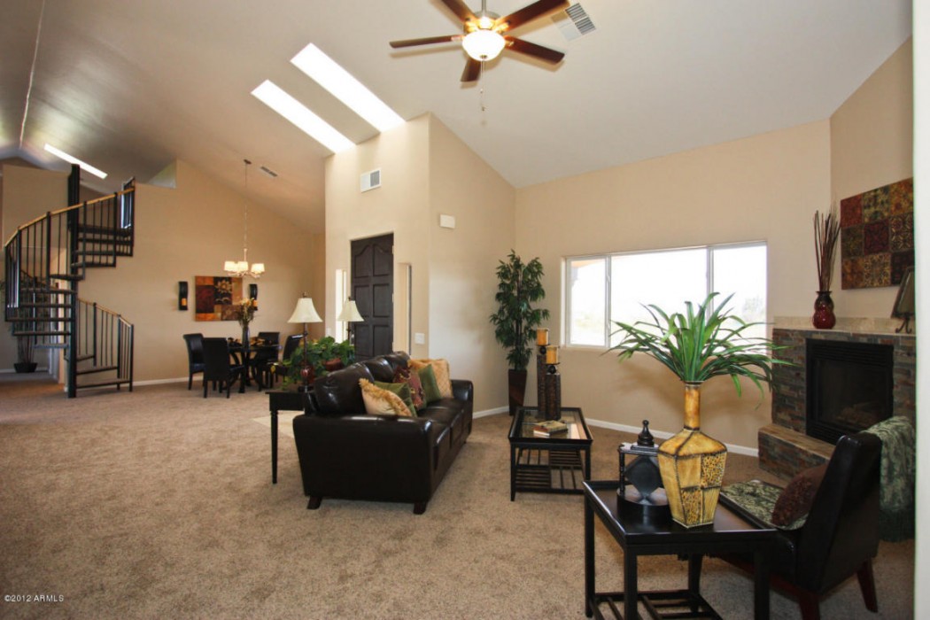 Custom home on 1+ acre lot, R43 horse property, with mountain & city light views. The main level has 3 bedrooms, formal living room w/fireplace, dining room, a gorgeous island kitchen w/granite counters & hickory cabinets & a highly upgraded gas 6 burner stove, Jenn-air dishwasher & refrigerator, family room, & laundry room. The spiral staircase leads up to a possible 4th bedroom/office/ or playroom with it’s own balcony. The home also features a beautiful owner’s suite w/separate snail shower & large jetted tub all redone with beautiful tile work. The guest bath has also been remodeled, new paint inside and out, new carpet, lots of natural light from the skylights, a pool and spa to relax in and a large 4 car portico & circle drive.