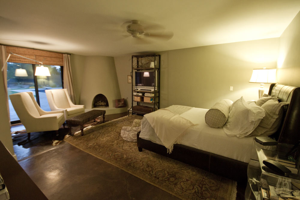 His goal was accomplished in this stunning recently updated home. Thoughtful details include high wood beam ceilings, poured concrete floors and a beautiful custom made hot rolled steel fireplace that acts as the heart of the home. High ceilings and clerestory windows allow you to follow the daylight and the expansive spaces create the perfect backdrop for your personal art collection.