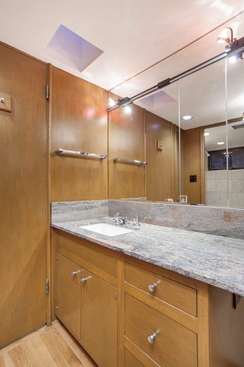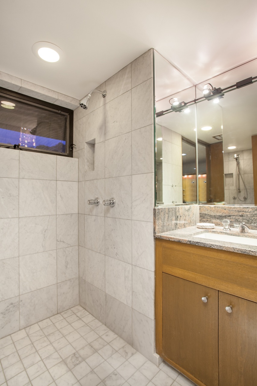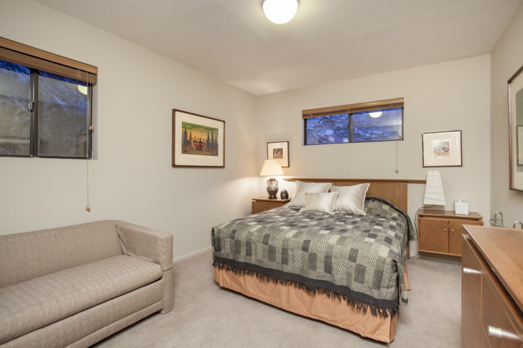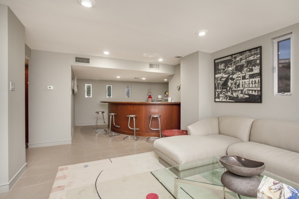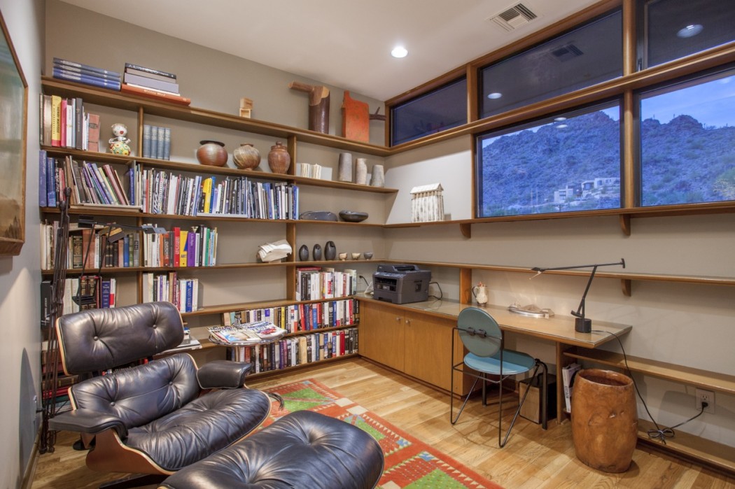 Site entry is through a secured and gated drive up to the three-car garage, guest house and motor court. A gracious pergola walkway directs you to the home and entry loggia. The ground floor offers a bonus room, media, bar and powder room. The main level showcases a stunning curved living room, formal dining, signature Wright/Taliesin inspired fireplace, and large workspace/kitchen with stainless steel counters. Follow the Gallery back to the open den bedroom, guest room, bath and into the master suite which includes dressing room/bath and walk-in closet. A wealth of original and restored mahogany cabinetry, bookcases and millwork have been retained.The home offers original oak floors and updated windows and doors. There is a pebble finish dramatic pool and water feature. The Landscape Design, including revised garden court patio was by award-winning Landscape Architect Steve Martino. All exterior sculpture, artwork and entry art tile wall does not convey.