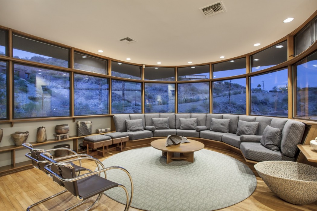 Based on a Frank Lloyd Wright concept, this stunning home was designed by Architect and Taliesin Fellow John Rattenbury of Taliesin Architects. Completed nearly simultaneously with the Lykes House, which was the last residential design by Mr Wright. Lovingly restored, it commands the hill with it’s prominent ship like features. The home sails out from the hillside site connecting the curvilinear spaces to the views and sky. A home for the ages…